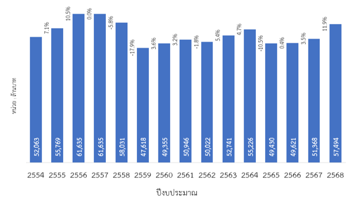 ภาพที่ 6 เงินอุดหนุนทั่วไปตามอำนาจหน้าที่และภารกิจถ่ายโอน ในปีงบประมาณ พ.ศ. 2554 – 2568