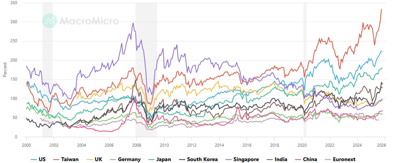 10. MacroMicro. (2025, October). World – Stock Market Capitalization by Country (% of GDP). [online] Available from: https://en.macromicro.me/charts/99946/world-market-cap-to-gdp [Accessed 10 November 2025].