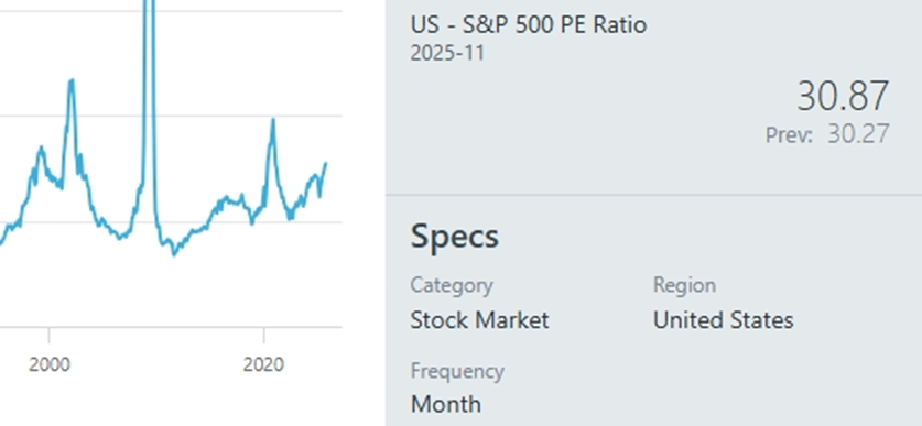 ภาพที่ 4: อัตราส่วนราคาต่อกำไร (P/E Ratio) ของ S&P 500